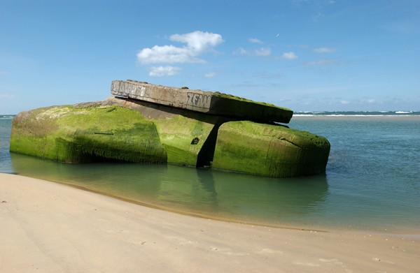 Un des blockhaus qui ont été engloutie par la mer, et la montée de cette dernière