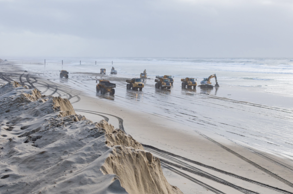 Les travaux importants commencent à Biscarosse, et continue au Pyla. Les grands moyens sont déployés. Crédit : HansLucas